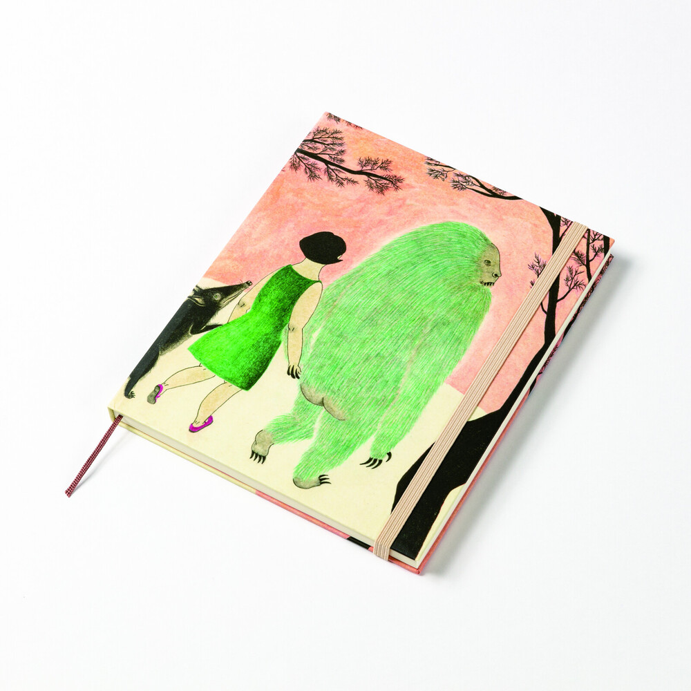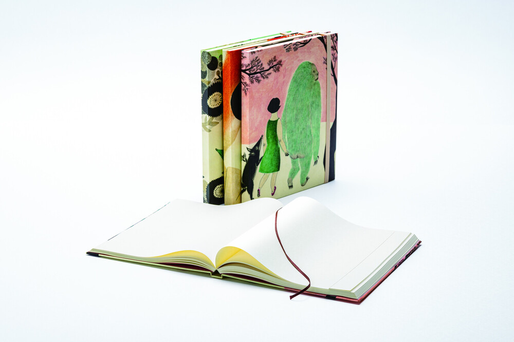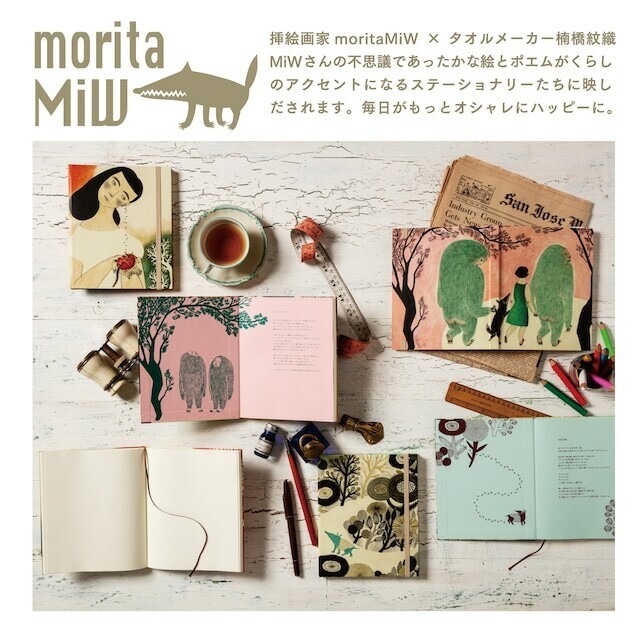 작가 모리타 미우의 그림이 그려진 하드커버 표지 노트입니다. 표지를 펼치시면 그림이 연결되어서 훨씬 아름답습니다.