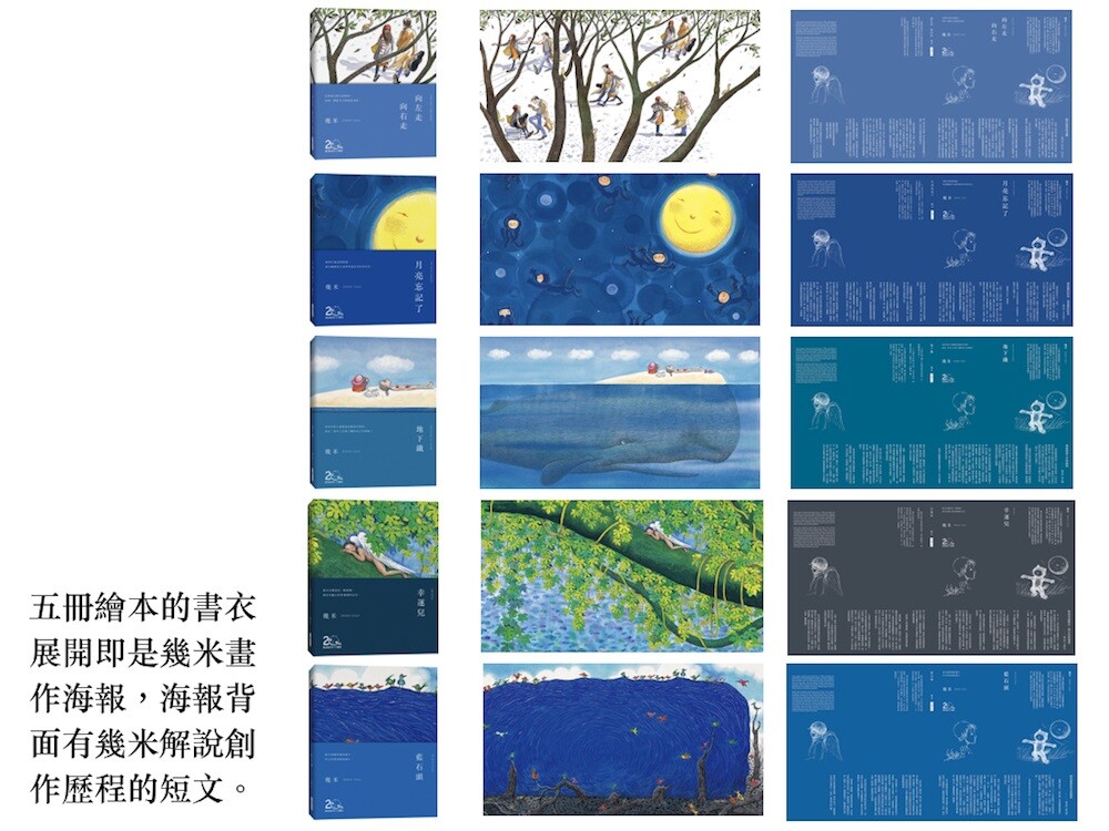 모든 책은 새롭게 디자인해 노출 제본 방식으로 제작되어, 책을 완전히 펼쳐 감상할 수 있습니다. 각 책의 커버를 펼치면 그대로 작품 포스터가 되고, 포스터 뒷면에는 작가가 직접 해당 작품의 창작 과정에 대해 들려주는 짧은 글이 수록되어 있습니다.