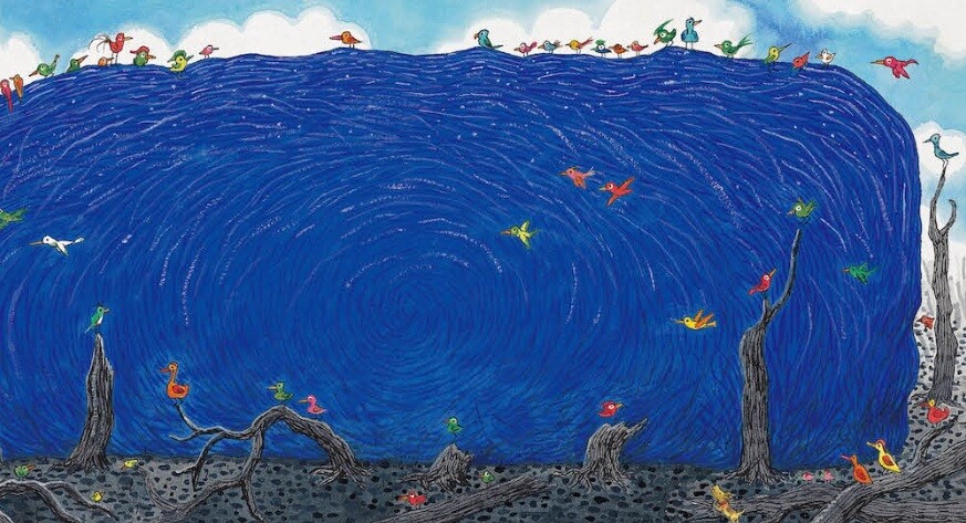 《藍石頭(푸른 돌)》 : 푸른 돌은 숲 깊은 곳에 조용히 누워 있었습니다. 그곳에서 영원히, 세상이 다할 때까지 머물게 될 거라고 믿고 있었습니다. 어느 날, 하늘을 뒤덮은 거대한 불길이 숲을 모두 태워 버렸고, 아름다운 푸른 돌은 부딪혀 두 동강이 나고 맙니다. 한 조각은 숲에 남았고, 다른 한 조각은 사람들에 의해 도시로 옮겨졌습니다. 도시로 간 푸른 돌은 사람들이 좋아하는 여러 가지 모습으로 깎이고 다듬어집니다. 그리고 숲에 남은 또 다른 반쪽과, 자연이 들려주는 바람 소리와 빗소리를 늘 그리워합니다. 그리움이 밀려올 때마다 푸른 돌은 갈라지고, 그리움이 거듭될수록 부서짐도 거듭되며, 점점 더 작아져 갑니다.