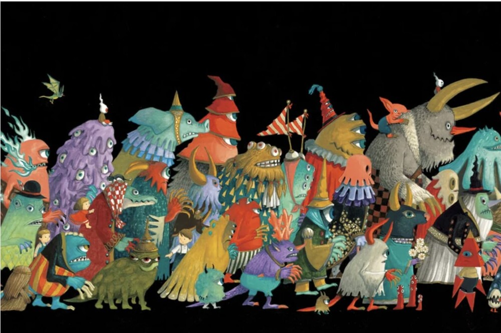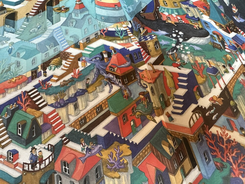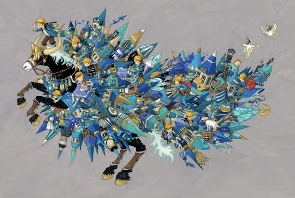 작가 주나이다(Junaida, 1978-)는 최근 몇 년간 ’미치‘, ’아니오‘, ’몬스터 가든‘ 등 그림책을 출간한 작가입니다(모두 후쿠인칸 쇼텐에서 출간). 유럽을 연상시키는 신비로운 세계, 캐릭터와 배경이 세밀하게 그려져 있습니다. 선명한 색채 속에서 밝음과 어둠이 공존하는 신비로운 세계관이 많은 주목을 받고 있습니다.