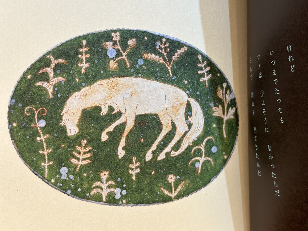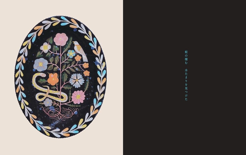 “도예가 가고시마 무츠씨의 전람회가 열립니다. 신작 그릇을 보고 거기서부터 이야기를 만들어 주시겠습니까” 라는 의뢰를 받은 작가 나시키 카호 씨는 모양과 색이 다양한 그릇에 화초, 말, 코끼리, 뱀 등의 생물이 그려진 200점의 작품을 몇번이나 반복해 보면서 이야기를 만들었습니다. 나시키 씨의 이야기를 들은 가고시마 무츠 씨는 몇 번이나 읽고 마지막 장면에 새로운 그릇을 한장 제작했습니다.