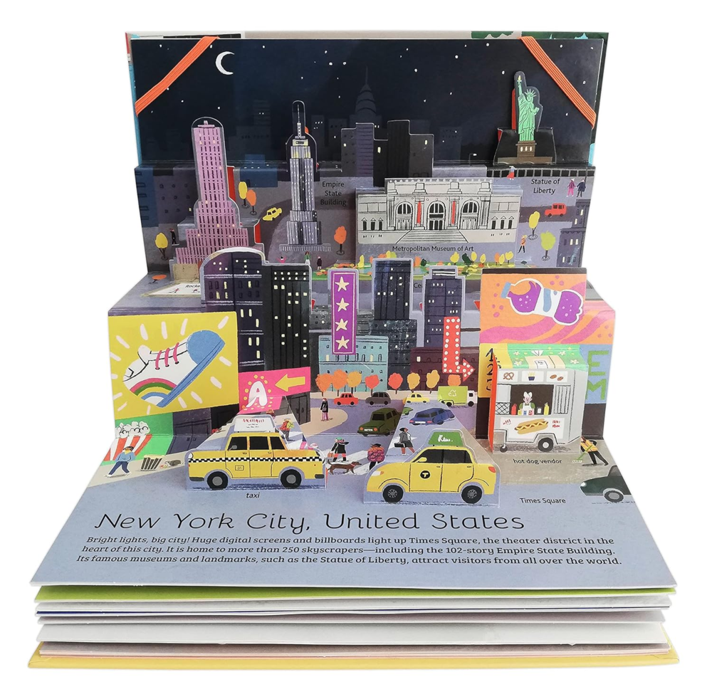 뉴욕시, 리우데자네이루, 케이프타운, 런던 등 아름다운 국제 도시의 상징적인 랜드마크들을 팝업으로 표현했습니다.