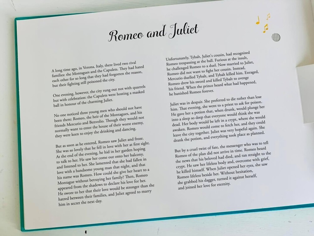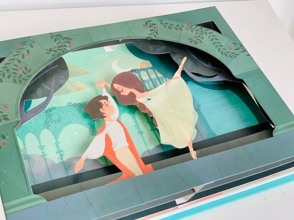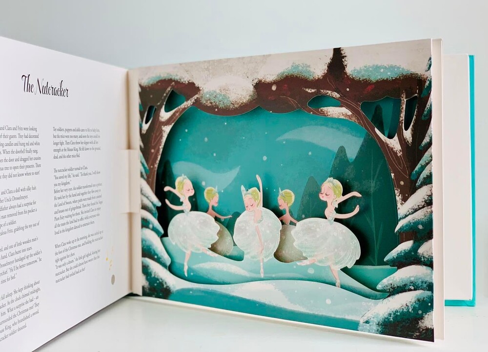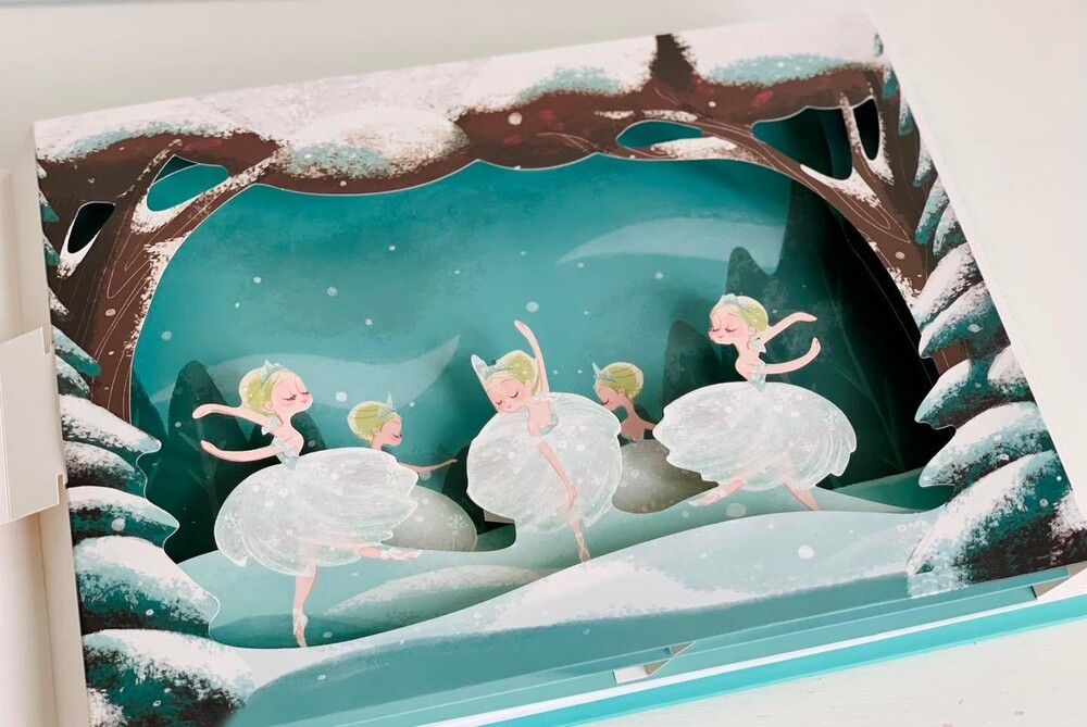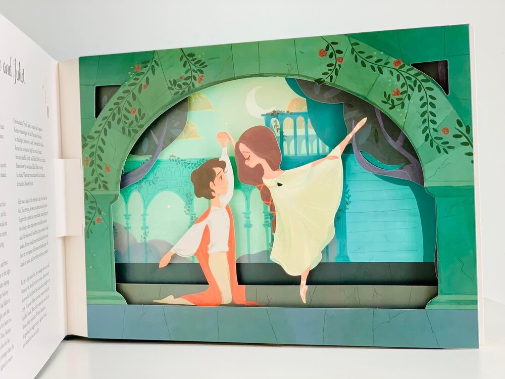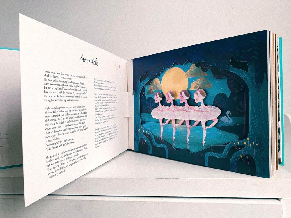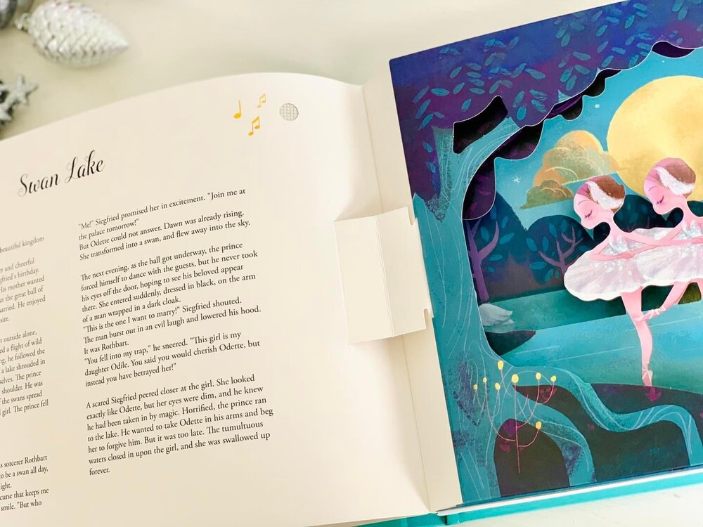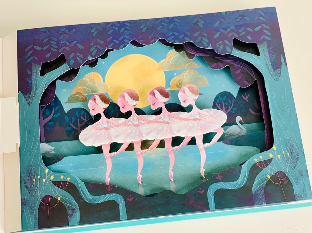 백조의 호수, 호두까기 인형, 잠자는 숲속의 공주, 돈키호테, 로미오와 줄리엣, 코펠리아의 아름다운 장면으로 구성되어있는 극장형 팝업북입니다.