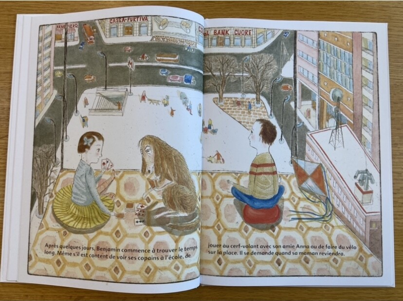 제가 좋아하는 스위스 출판사 책입니다. 이탈리아 출신 작가님이신데 첫번째 책도 작년에 책방에서 판매했어요. 그 후 출판된 신작입니다. 지난 책에 이어 마침내 마을에 잘 정착한 어린 벤자민에 관한 이야기에요. 낯선 마을로 이사간 후 잘 정착한 벤자민에게 새로운 걱정거리가 생겼어요. 엄마는 아픈 고모를 돌보기 위해 멀리 떠나셔야 하고, 언제 돌아오실지 모릅니다. 엄마는 떠나기 전에 벤자민에게 선물을 남깁니다. 엄마가 없는 동안 쓰고 그릴 수 있는 빨간 공책이에요. 벤자민은 어린 안나(첫번째 책에서 만난)의 귀중한 도움을 받아야합니다.