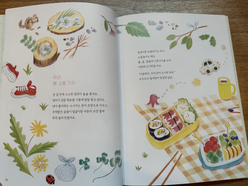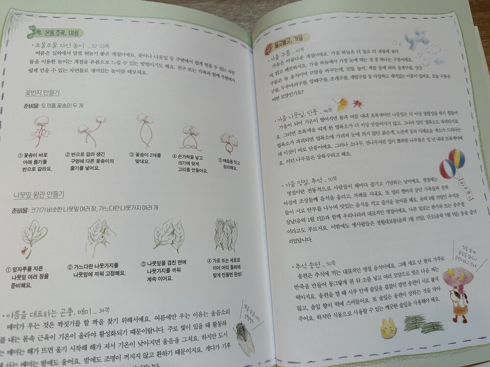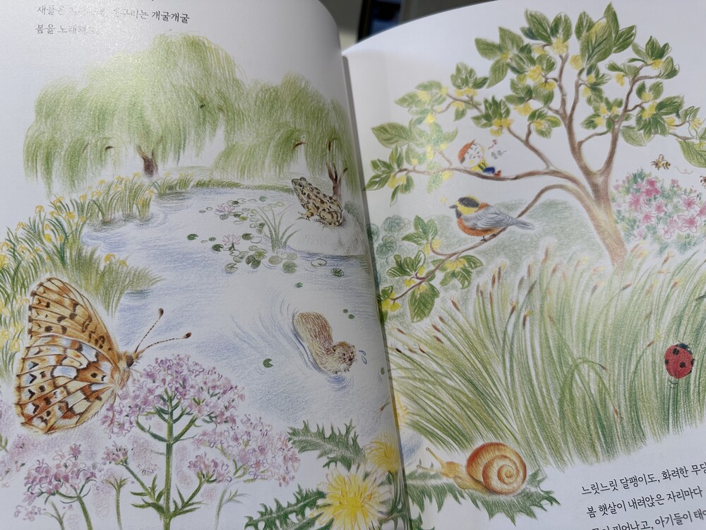 봄, 여름, 가을, 겨울의 깨알같은 글과 귀여운 색연필 그림이 잘 어울려서 아이나 성인들 모두 좋아하실 것 같습니다. 특히 스티커가 있어서 책방에 진열하자마자 아이들에게 최고인기입니다.