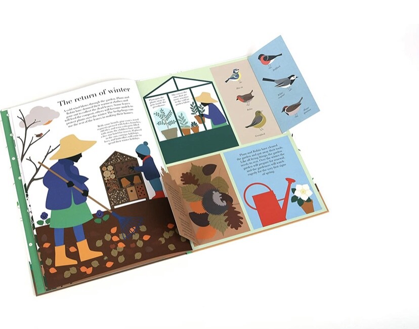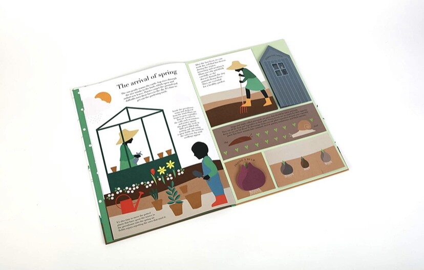 정원의 구석구석을 보여주는 책으로 종이 아래 세부적인 그림들이 많이 숨겨진 재미있는 책입니다. 튤립 구근 안을 들여다보고, 콩깍지 안에 있는 완두콩을 발견하세요. 무당벌레가 성가신 진딧물을 없애주는 것을 보고 잎 아래 잘 익은 딸기를찾아보세요. 책을 넘기다보면 어느새 정원 가꾸기의 매혹적인 세계로 빠져들게 됩니다.