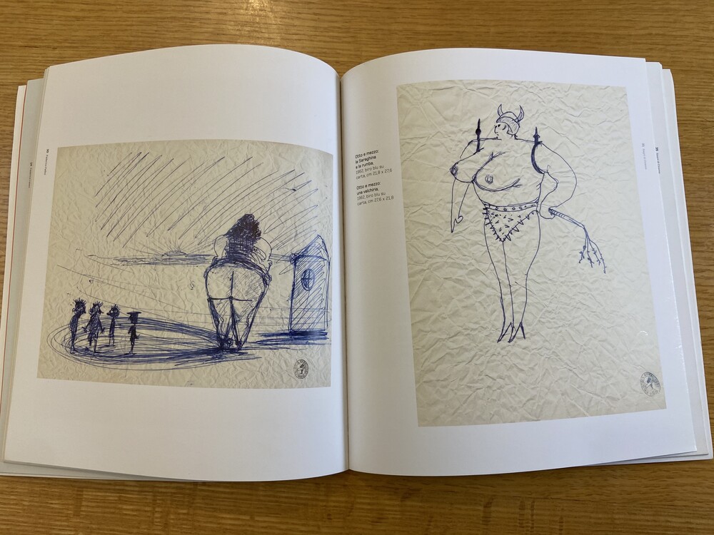 이탈리아 영화감독 federico fellini(1920~1993)의 Torre Avogadro (Lumezane, 2004년 3월 31일)에서 열린 전시회 카탈로그입니다.