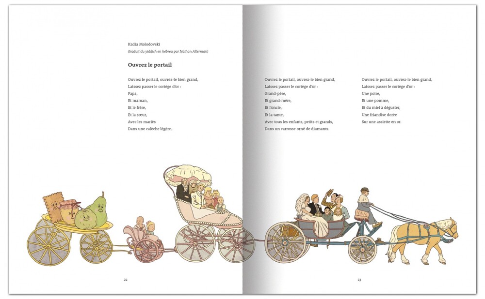 20세기에 많은 히브리 시인들이 아이들을 위한 시를 썼습니다. 연대순으로 쓰여진 이 책은 유럽에서 처음 출판된 시의 이야기를 들려줍니다. 첫 장에서는 19세기 말 동유럽에서 태어나 젊은 시절 이주한 시인들을 소개합니다. 두 번째 장은1900-1925년대에 이스라엘 밖에서 태어난 작가들에 관한 내용입니다. 세 번째 장은 1926년에서 1947년 사이에 이스라엘에서 태어난 세대에 관한 이야기입니다. 이스라엘의 여러 세대의 독자들이 읽거나, 아이들과 부모들이 함께 낭송하거나, 교과과정에 포함시킨 시들입니다. Batia Kolton의 유머러스한 삽화가 아름답습니다.