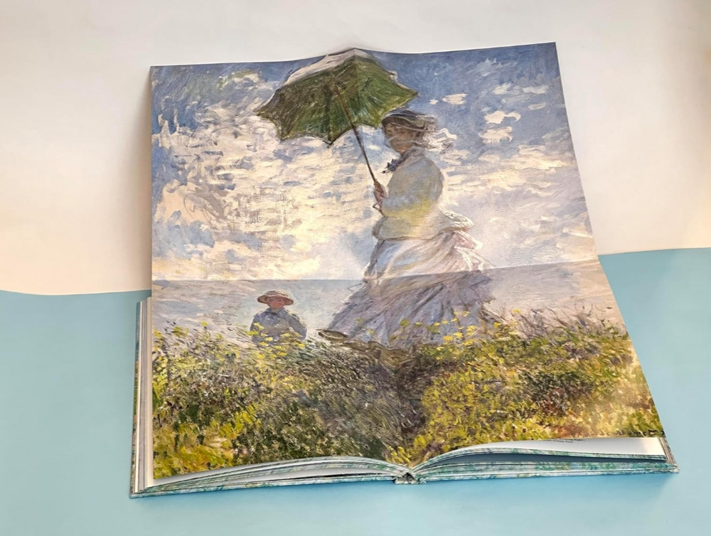 주제별로 구성된 이 책에는 여섯 점의 주요 걸작, 즉 <인상, 해돋이>, <양산을 쓴 여인>, <보르디게라>, <베네치아, 다리오 궁>, <수련 연못>, 그리고 <아침의 수양버들>의 펼침면을 포함한 60점의 완벽한 복제 작품이 담겨 있습니다.