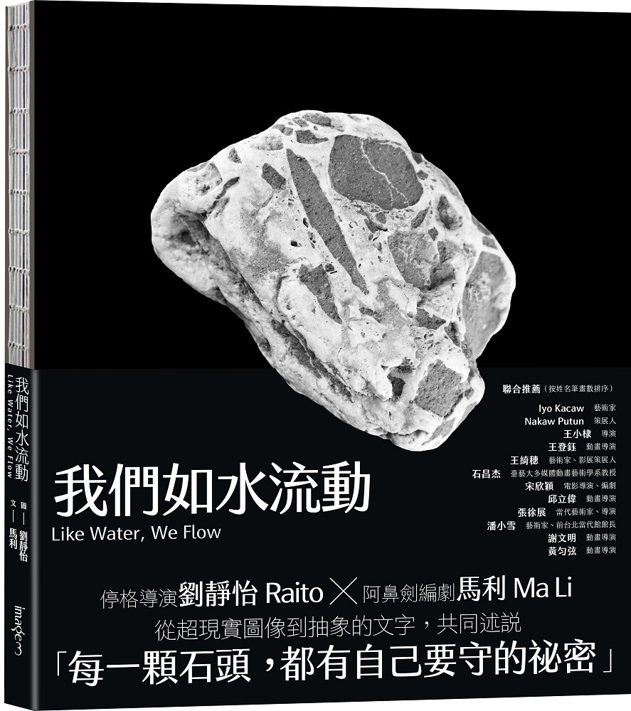 이 사진집은 초현실적인 이미지와 시적인 문장으로 돌 하나하나마다 담긴 우주의 비밀을 들려줍니다. 유정이 작가는 “보기에는 단단한 돌도 사실은 속이 부드럽다”라는 통찰을 통해, 돌이 물방울처럼 부드럽게 움직이는 초현실적인 감각을 스톱모션 애니메이션 기법으로 구현했고, 각본가인 마리는 그 애니메이션을 본 후 시적인 문장으로 새로운 생명을 불어넣었습니다. 그 문장에 맞춰 유정이 작가가 전체 이야기를 스틸 이미지로 재시각화하여 『물처럼, 우리는 흐른다』라는 사진집이 탄생하게 되었습니다.