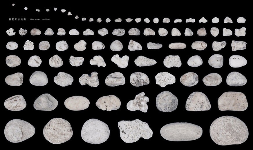 유정이 작가는 대만 화롄의 마코타아이 생태예술촌에서 2주간 레지던시 창작 활동을 했습니다. 그곳에서 그녀는 땅과 자연이 공존하는 강인하면서도 부드러운 아미족의 삶에 깊이 감동했고, 돌을 새롭게 인식하게 되었습니다. 돌이란 자연 속에서 무한한 가능성을 내포한 존재이며, 모래알처럼 작은 돌부터 산처럼 거대한 덩어리의 돌까지 모두가 저마다 독특한 생명력이 있다는 사실을 깨닫게 된 것입니다.