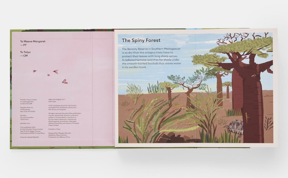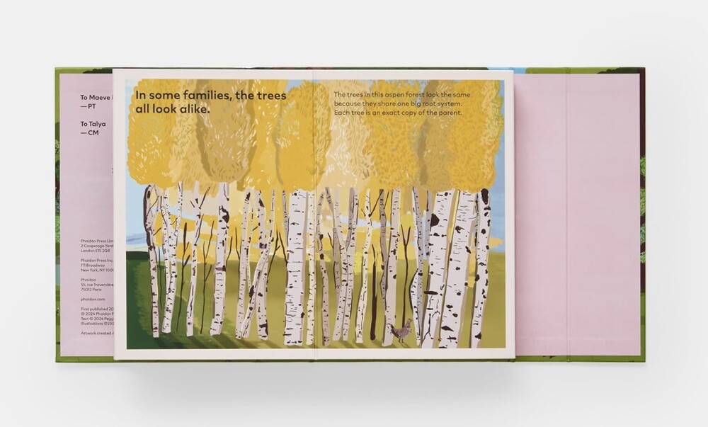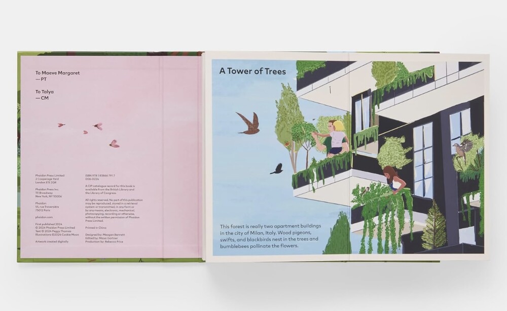 앞 면에는 나무가 인간처럼 서로 대화하고, 서로를 돌보고, 먹이를 나누고, 함께 집을 만드는 과정을 보여줍니다. 무성한온대 숲에서 나무가 어떻게 연결되고 숲을 형성하는지에 대해 설명되어 있습니다. 뒷면에는 전 세계 다양한 숲의 그림이있습니다. 숲에서 살아가는 동식물이 소개되어 집니다.
