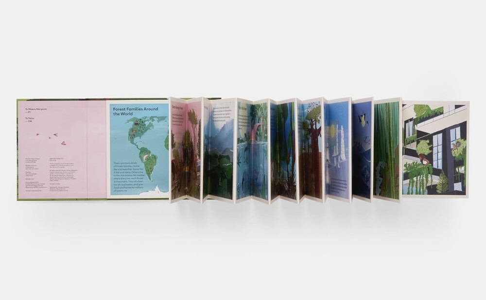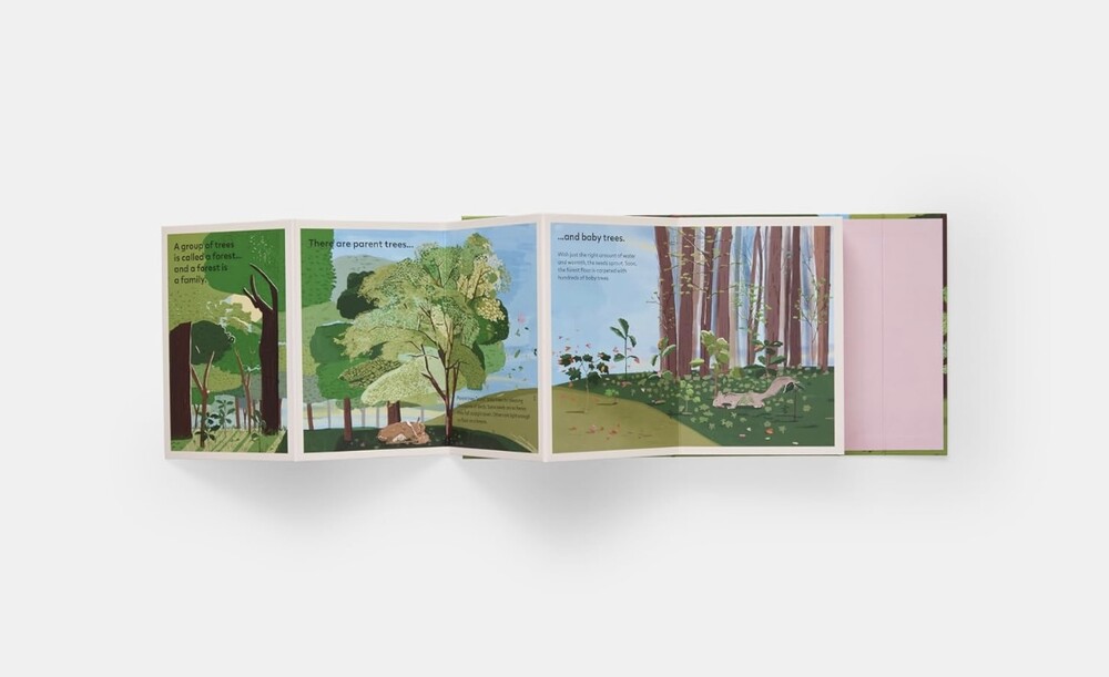 숲에 대한 따뜻한 소개와 아름다운 풍경이 아코디언 스타일의 보드북 형식으로 담겨져 있습니다. 2.47미터가 넘는 길이의 숲 풍경이 펼쳐집니다.