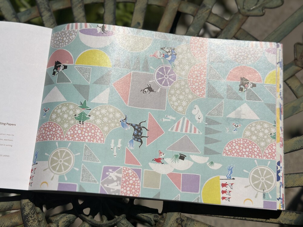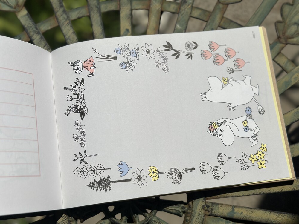 이 책은 만화에서 발췌한 무민 캐릭터를 활용한 패턴이 담긴 다채롭고 재미있는 편지지 책입니다. 총 100장의 편지지가 들어있습니다. 편지 쓰기뿐만 아니라 장식, 포장 등 다양한 용도로 활용하기 좋은 종이로 무민 팬들이 좋아할만한 책입니다.