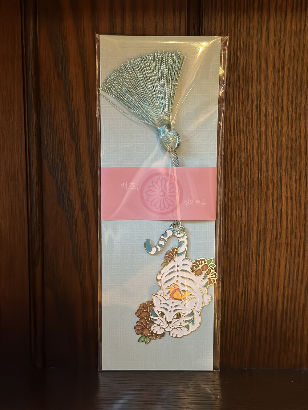 전통적인 한국 민화에 나오는 호랑이 책갈피입니다.