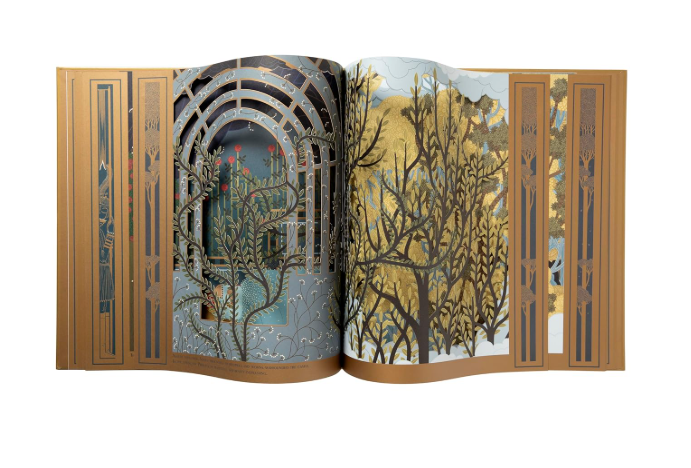 이 섬세한 페이퍼 컷팅북은 유명한 잠자는 숲속의 미녀의 매혹적인 세계로 안내합니다