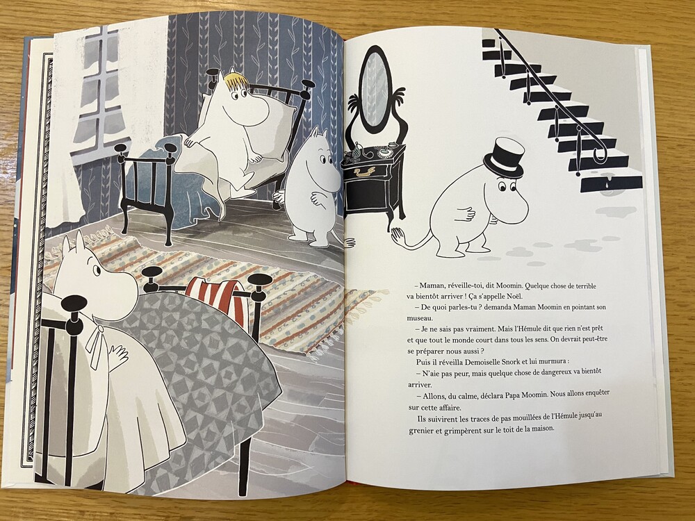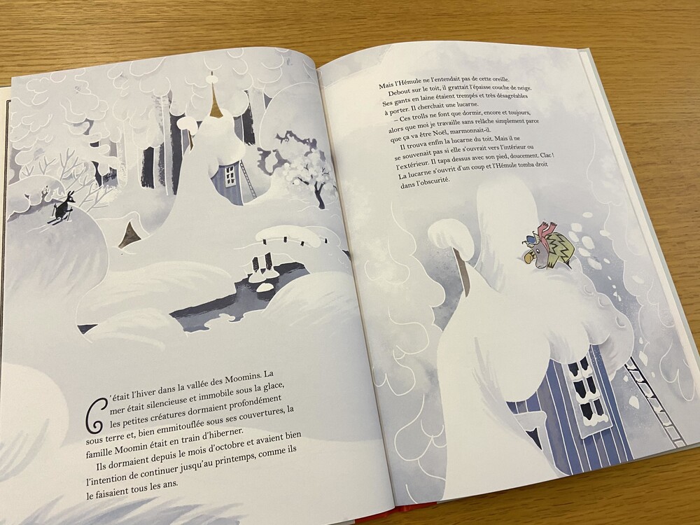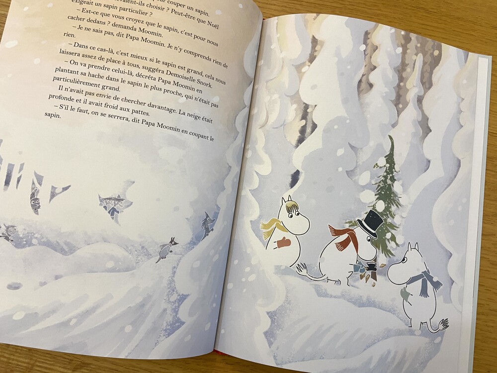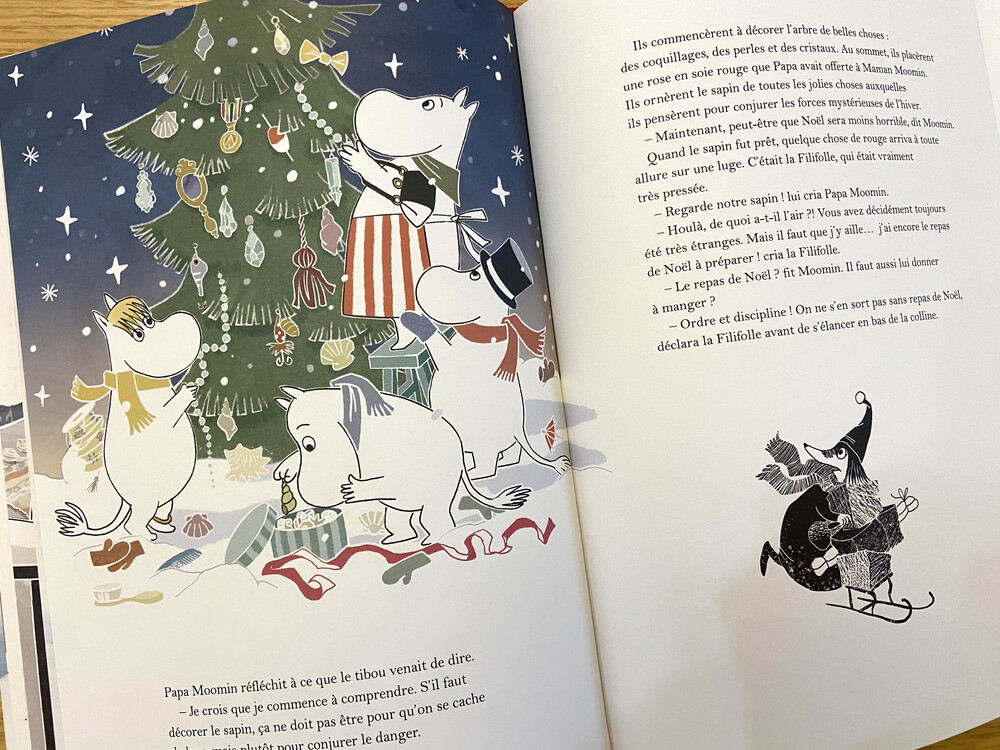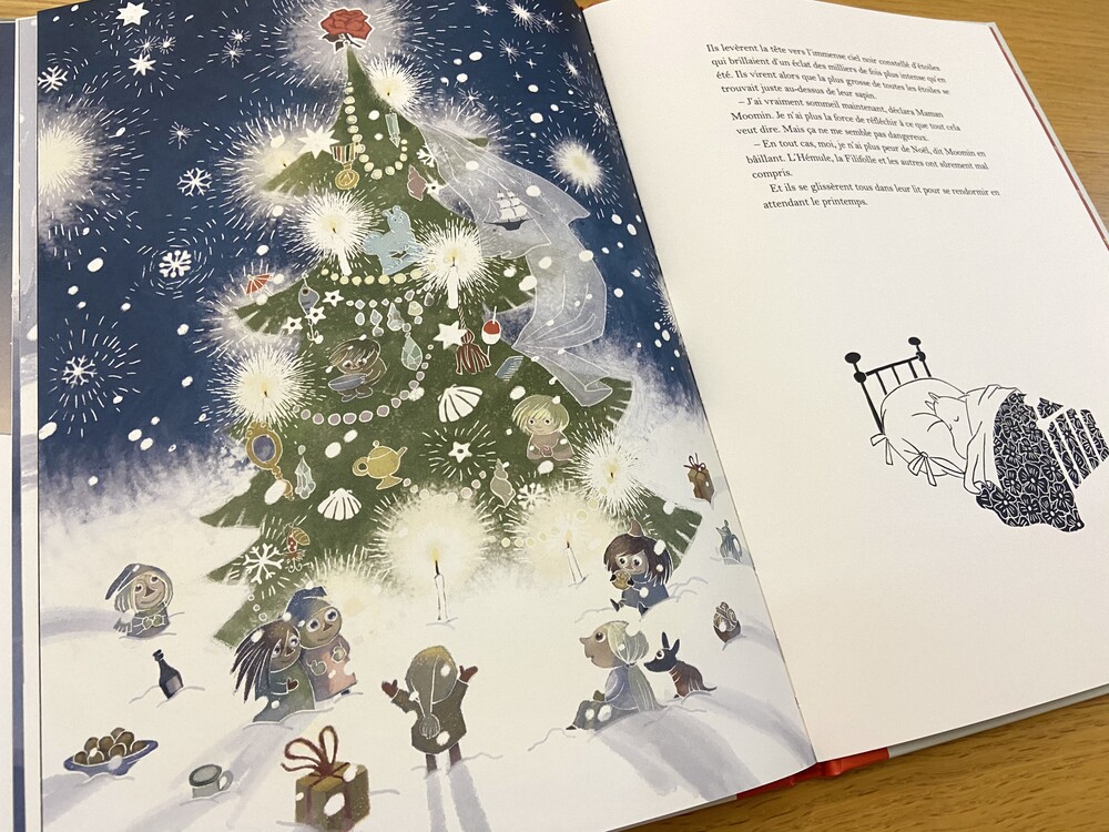눈이 계곡을 덮었습니다. 12월 한 달 동안 무민씨 가족만 푹 자고 있어요. 이웃들은 크리스마스 준비로 바쁩니다. 장식해야 할 나무, 식사 준비 등등 일거리가 많습니다. 무민씨 가족은 잠에서 깬 후 시간이 이렇게 지체된걸 알고 겁에 질려 서둘러서 모든 것을 준비합니다.