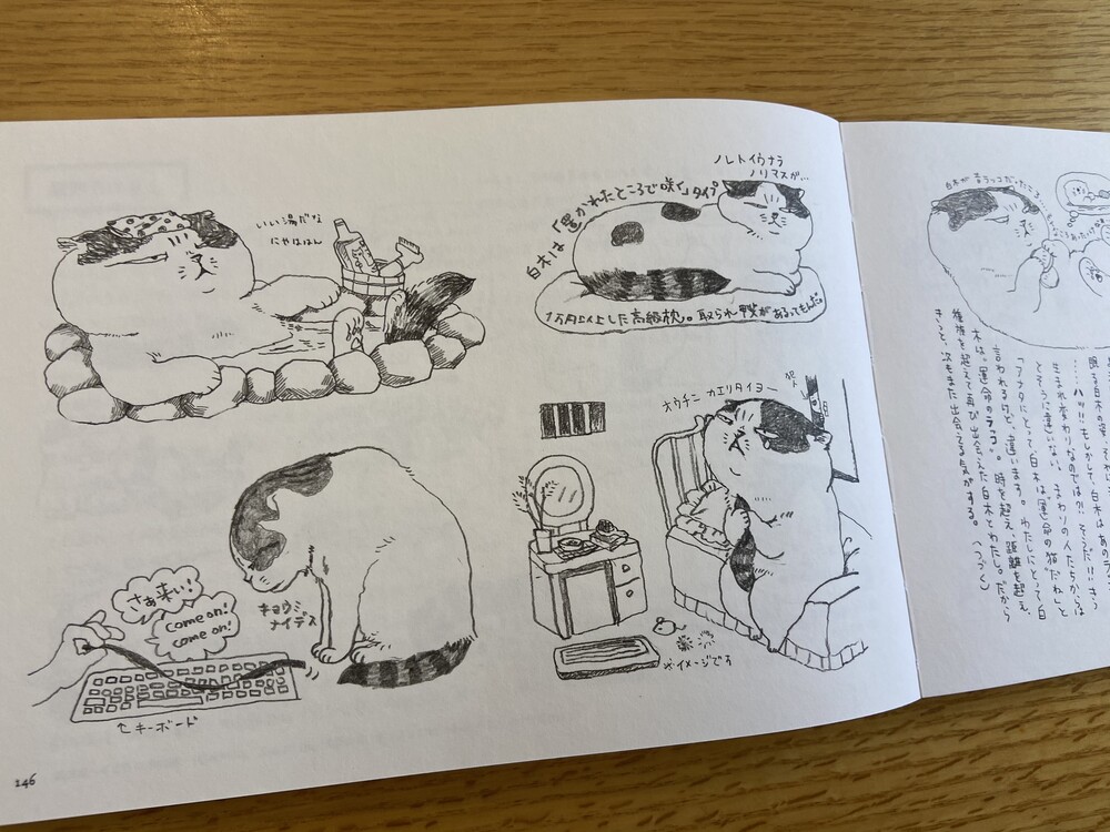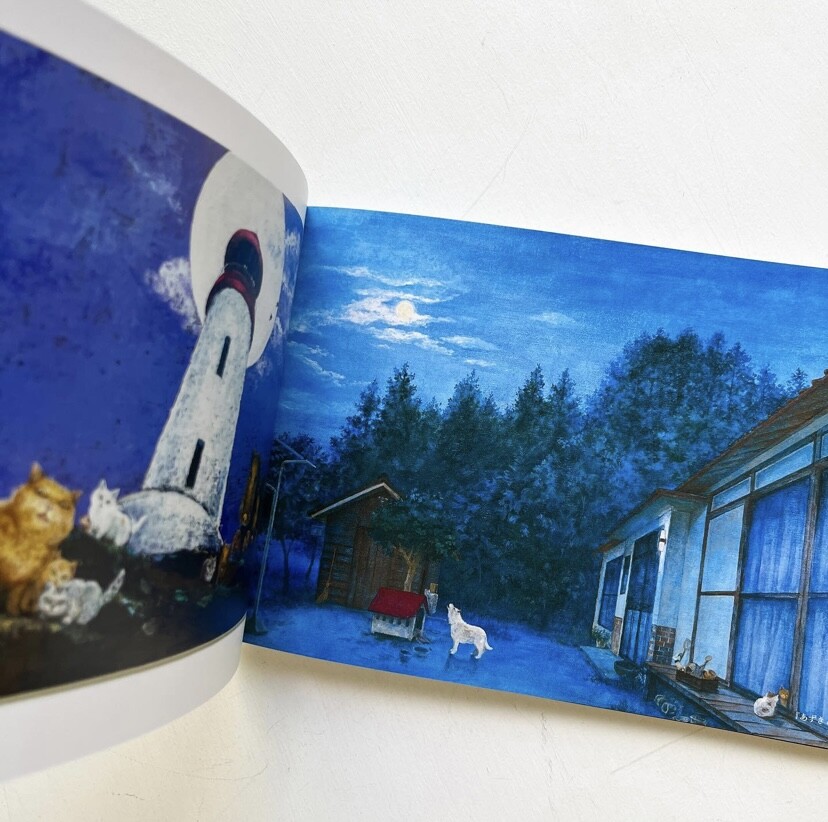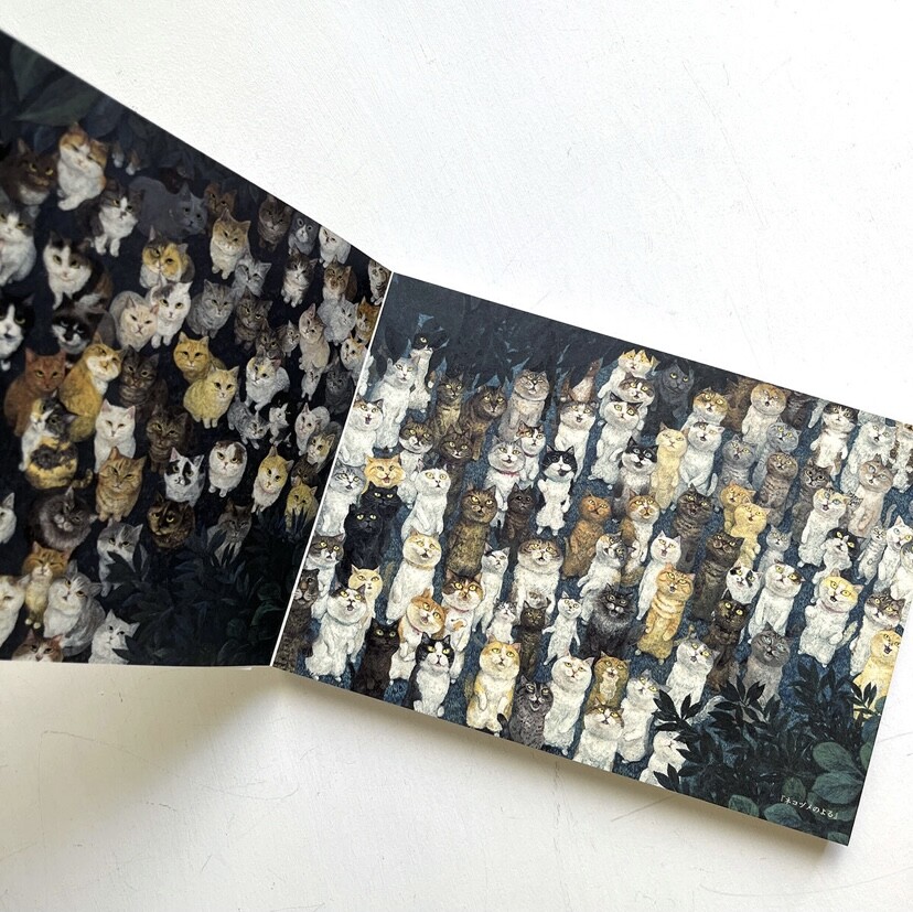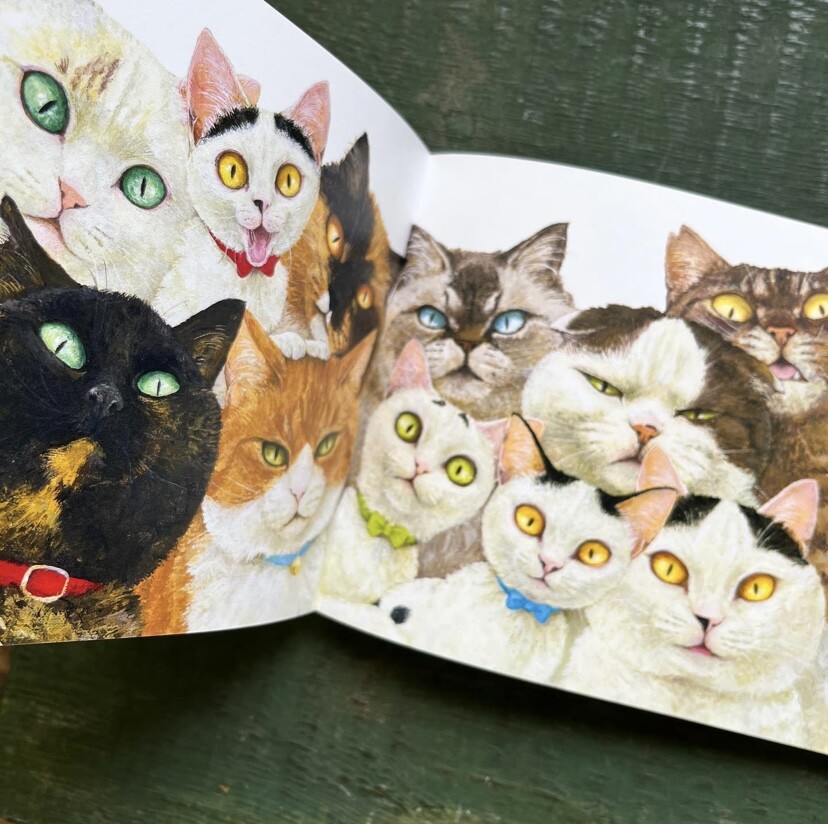 작가의 좌우명은 “기회가 있으면 고양이를 그린다. 고양이와 관련이 없어 보이는 이야기의 책에서도 자세히 찾아보면 고양이를 발견할 수 있다” 입니다. 작가는 최근에 고양이가 등장하는 그림책을 많이 그렸고, 이 책에도 그림책 드로잉, 데뷔 때부터 최근 작품까지 원본 그림이 포함되어 있습니다.