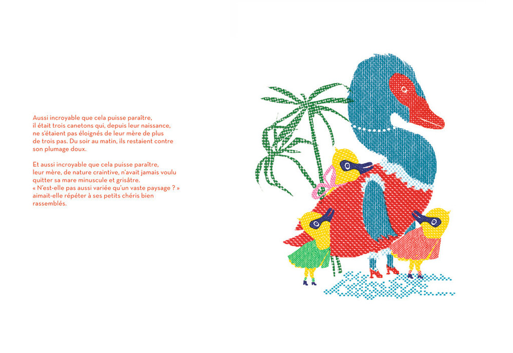 세 마리의 아기 오리들은 태어난 후 엄마와 매우 가깝게 지냈습니다. 그러던 어느 날 모험을 갈망하던 아기 오리들은 여행을 떠납니다. 신나는 여행을 경험하게 되지만 집에 돌아왔을 때 그들은 단 한가지를 배운 것 같습니다. 엄마가 항상 말했듯이 세상 모든 곳에 오리들로 가득 차 있기 때문에 떠나는 것이 의미가 있을까요? 아이들이 떠날 준비가 되었을 때 어른들의 역할에 대해 생각하게 하는 책입니다.