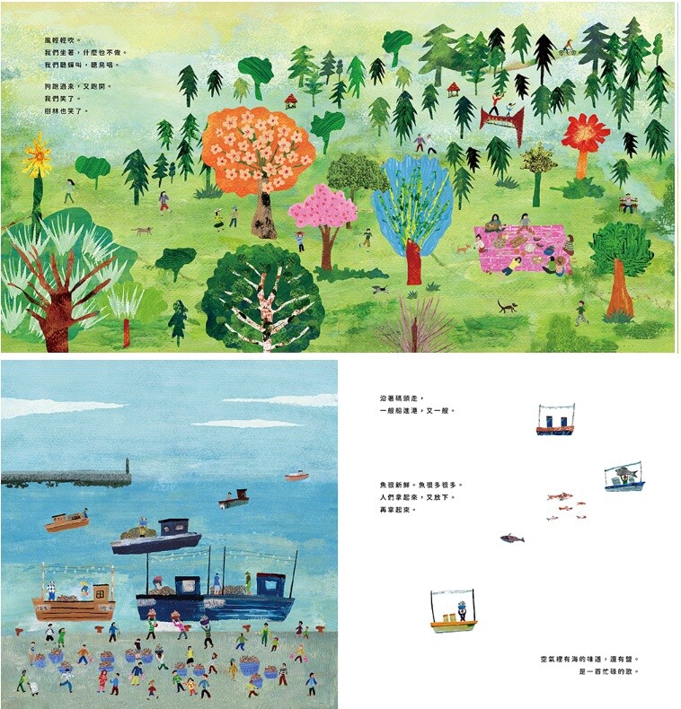 책을 펼치면 넓은 챙모자를 쓴 인물을 따라 우리는 들판과 산, 숲과 개울, 바닷가를 여행하고, 때로는 사람들 사이로 들어가 부두와 시장, 마을을 거닐기도 합니다. 또 어떤 순간에는 사당 옆 큰 나무 아래에서 잠시 쉬기도 합니다. 페이지를 넘기다 보면 우리 마음 깊은 곳에 있던 감각과 감정의 기억들이 문득 깨어날 것만 같습니다.