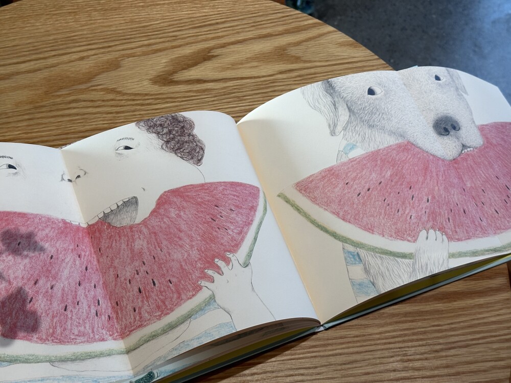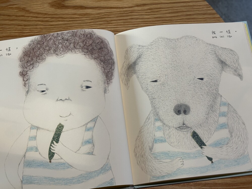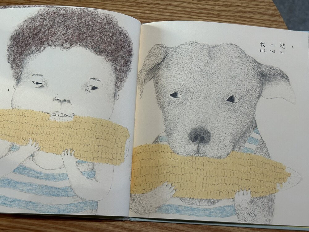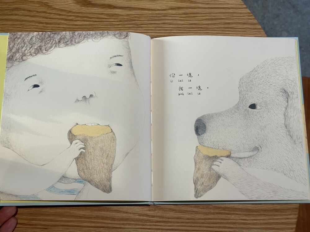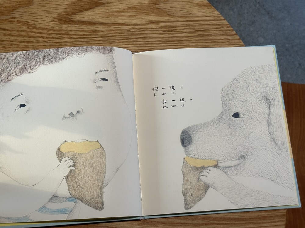 이번 달에 출간된 따끈따끈한 대만 그림책입니다. 이야기는 어린아이와 개가 즐겁게 음식을 나누어 먹으면서 시작합니다.