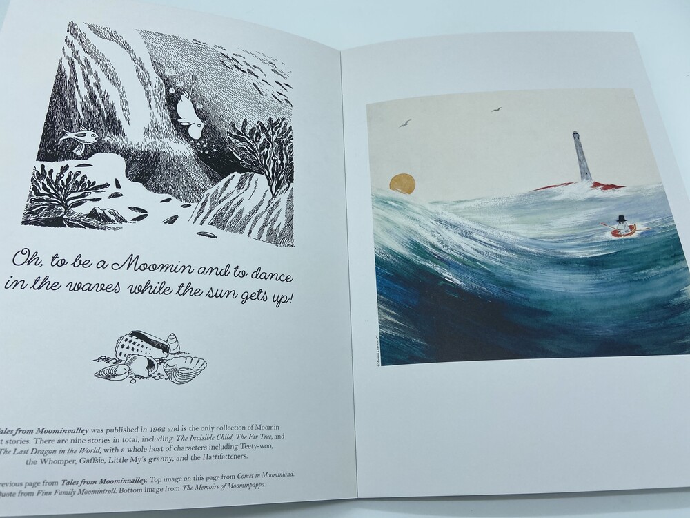A4 사이즈의 단단한 종이에 토브 얀손의 고전 무민 삽화와 뒷면에는 설명이 있어서