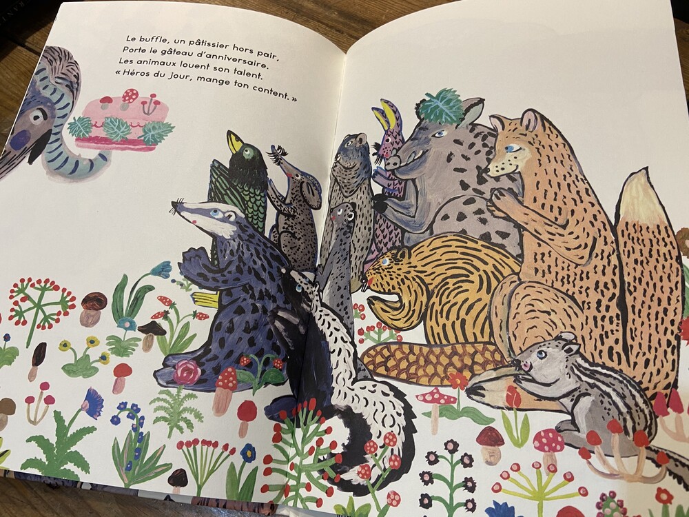 모든 동물들이 생일 선물을 준비하고 있습니다. 원숭이, 하이에나도 선물을 준비하고, 타조는 딸기잼을 카트에 가득 채우고, 하마는 황금 송어를 준비합니다. 케잌, 꽃다발도 준비되었습니다.