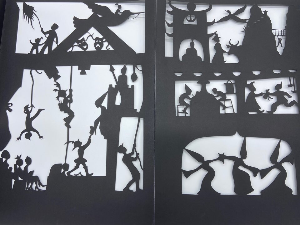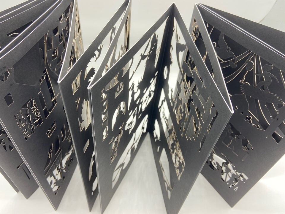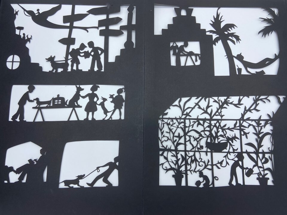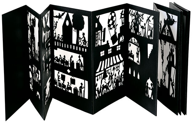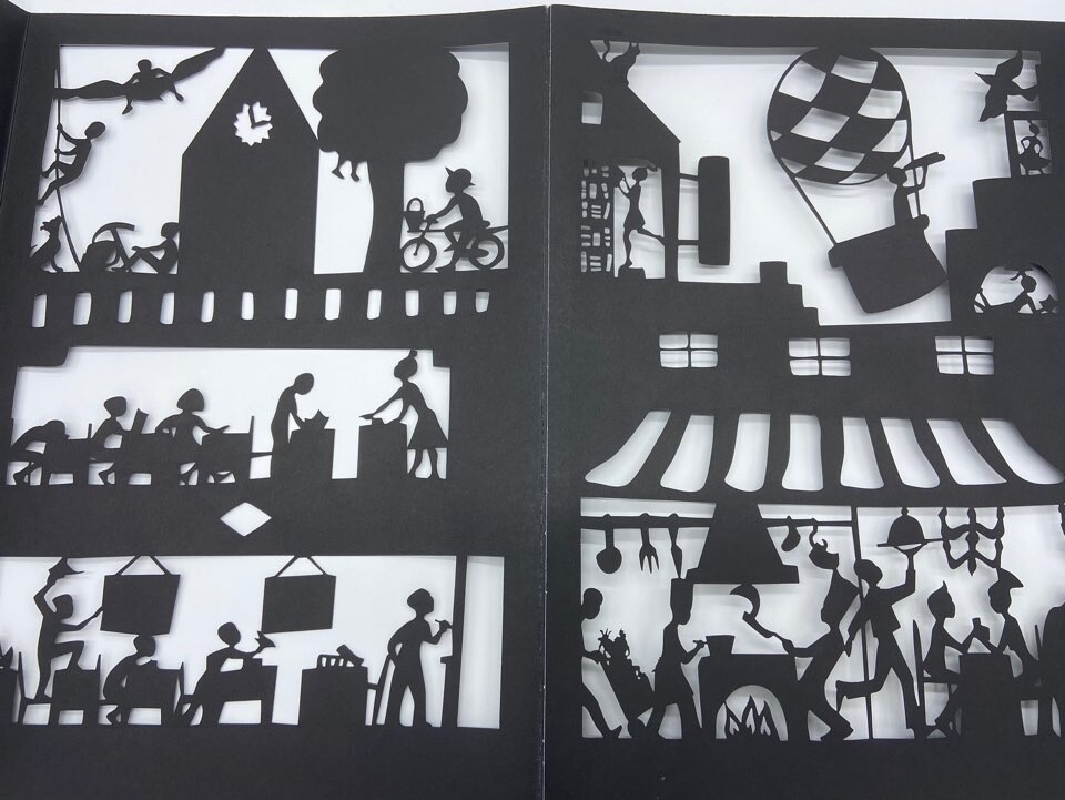 어느 도시에서 하루동안 일어나는 미스테리한 일들입니다. 글 없는 페이퍼컷팅 책이에요.