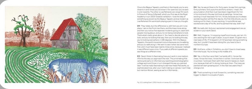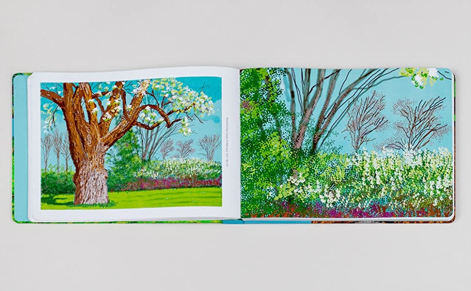 2020년 초, 전세계적인 COVID-19가 시작되자 데이비드 호크니는 노르망디에 있는 그의 새 목조주택에서 지냈습니다. 꽃이 피는 116점의 아름다운 풍경을 그린 스케치북 형식의 작품입니다.