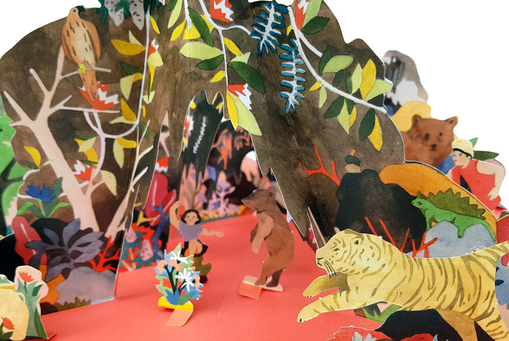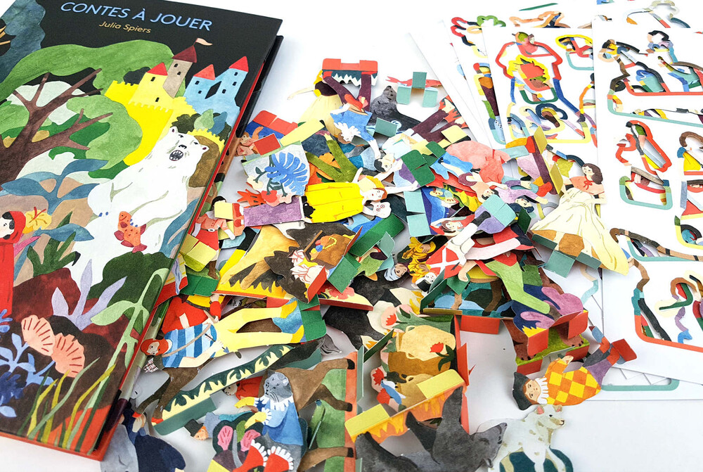 각각 무대에 네 개 동화의 등장인물을 각자 배치해서 이야기를 만들어보는 팝업북이에요.