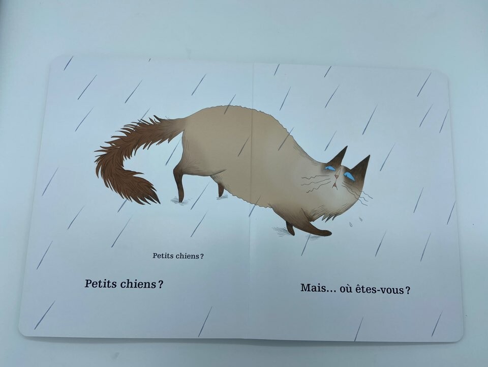 샴 고양이는 잃어버린 강아지를 찾기 위해 숲 속으로 뛰어들어갑니다.